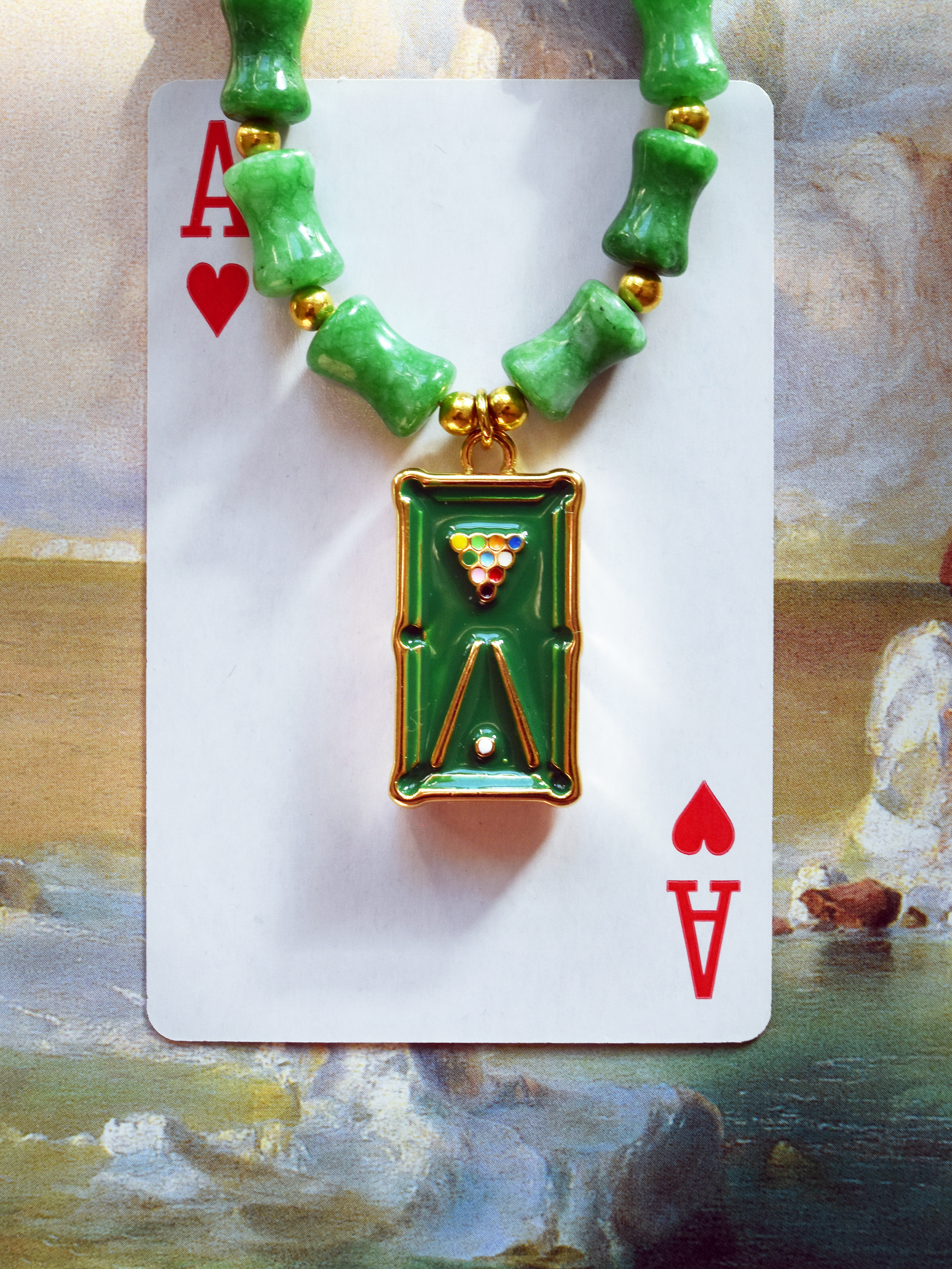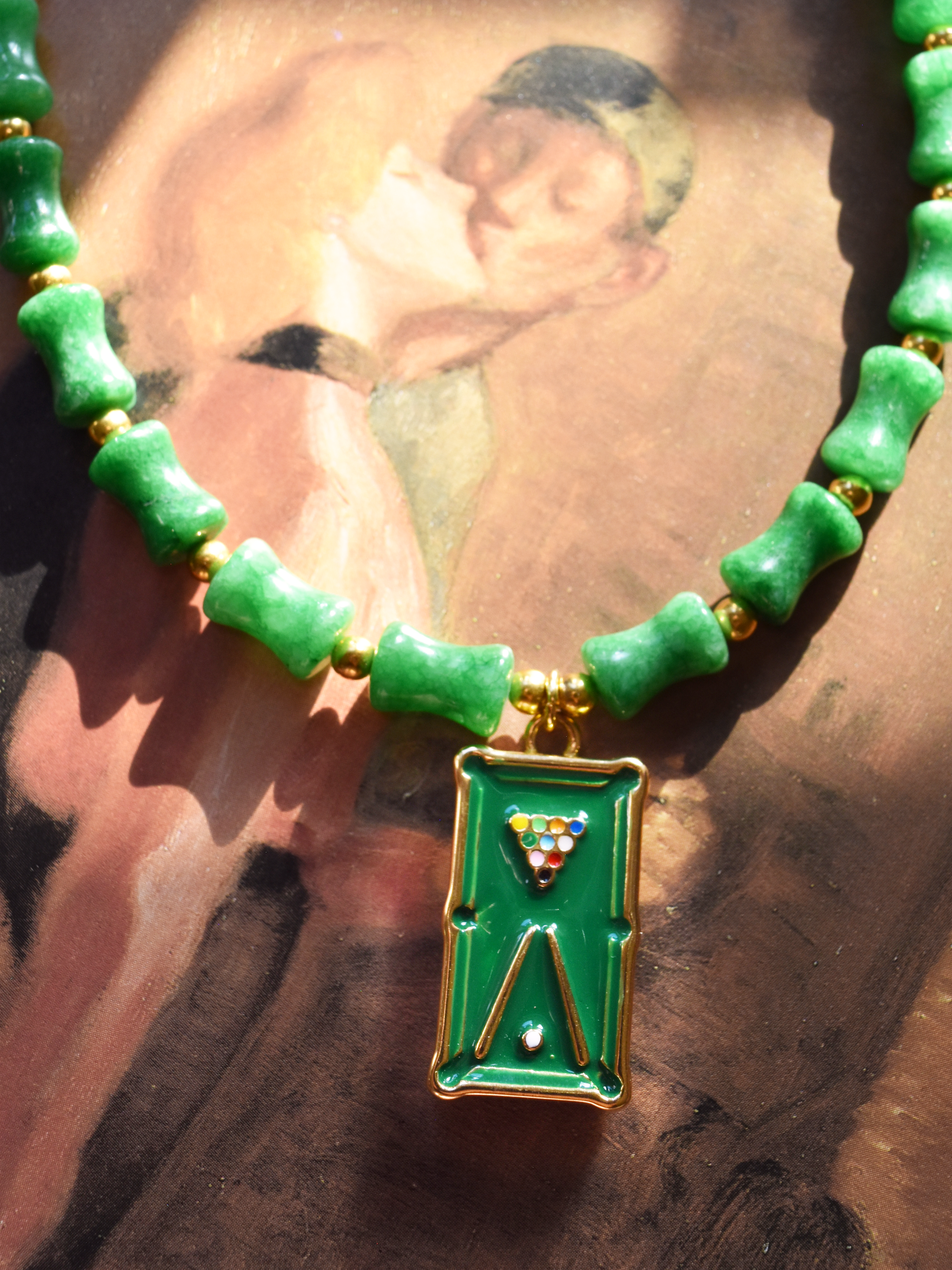 Billiards Table Emerald Green Color Enhanced Quartz Necklace