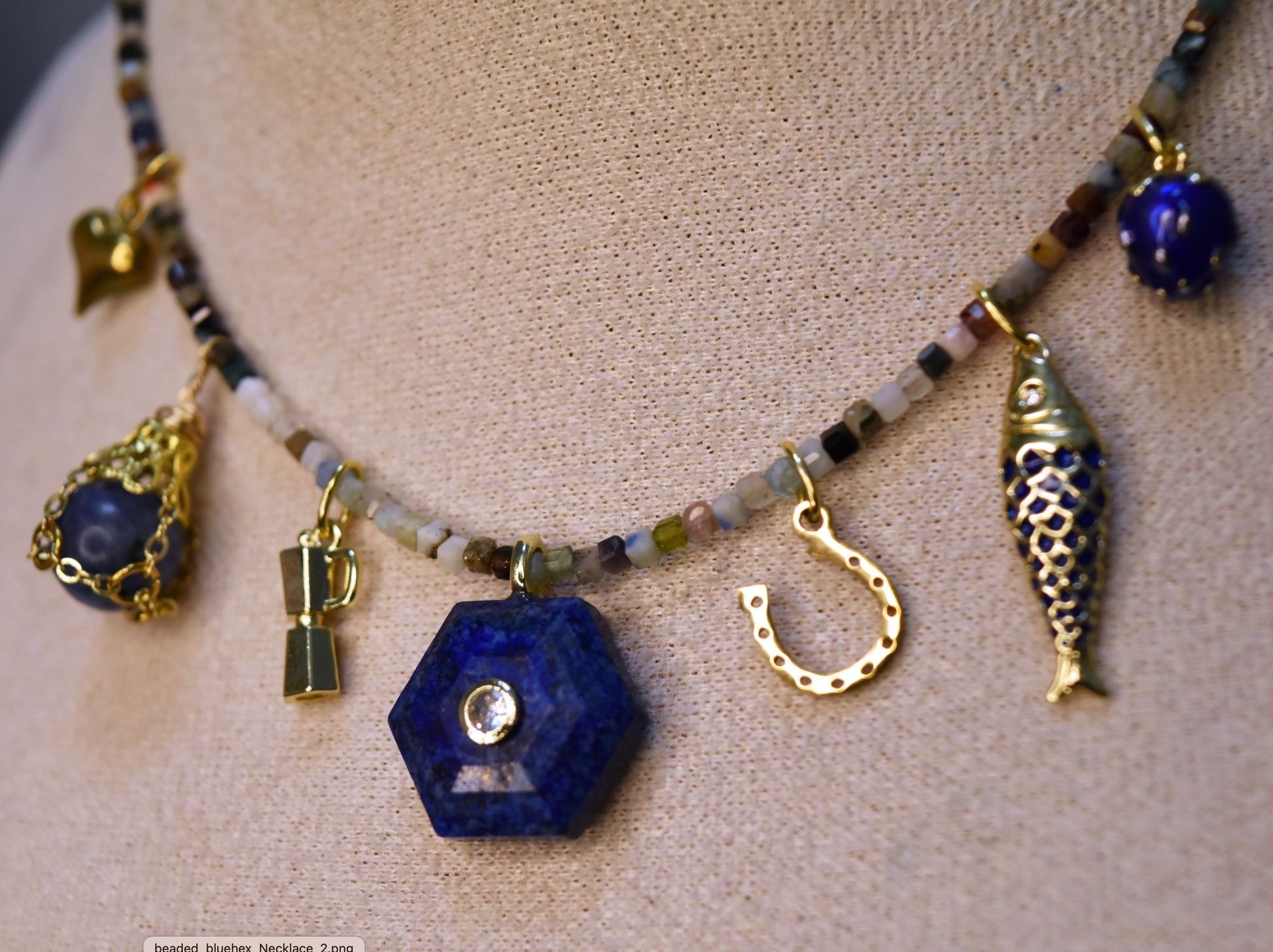 Lapis Lazuli Hexagon Charm Necklace